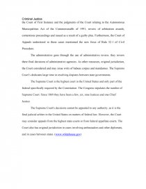 The administrative goes through the use of administrative review, they review there final decisions of administrative agencies. As other resources, original jurisdiction, the Court considered and may issue writs of habeas corpus and mandamus. The Supreme Court’s dedicates large time in resolving disputes between state governments.