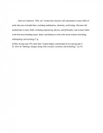 Interview Question: Why, are "women have become well represented in many fields of study that once excluded them, including mathematics, chemistry, and biology. But men still predominate in many fields, including engineering, physics, and philosophy, and women cluster in the fine arts (including music, dance, and drama) as well as the social sciences (including anthropology and sociology)" (p.